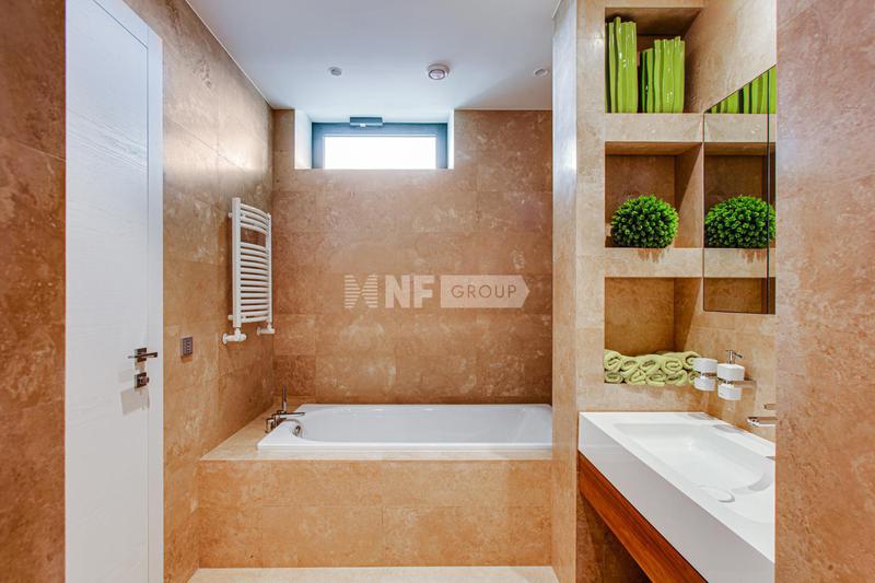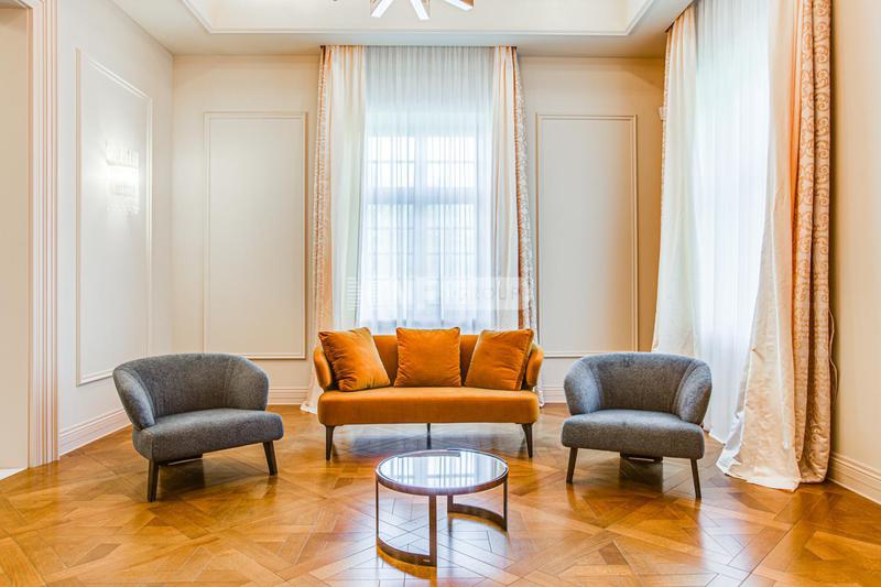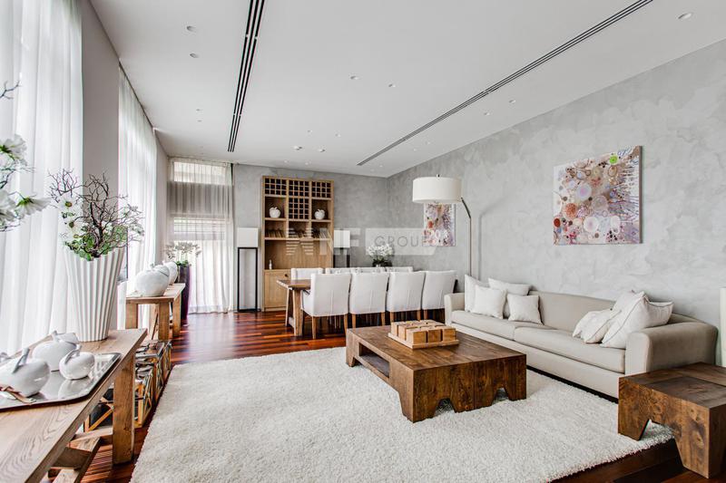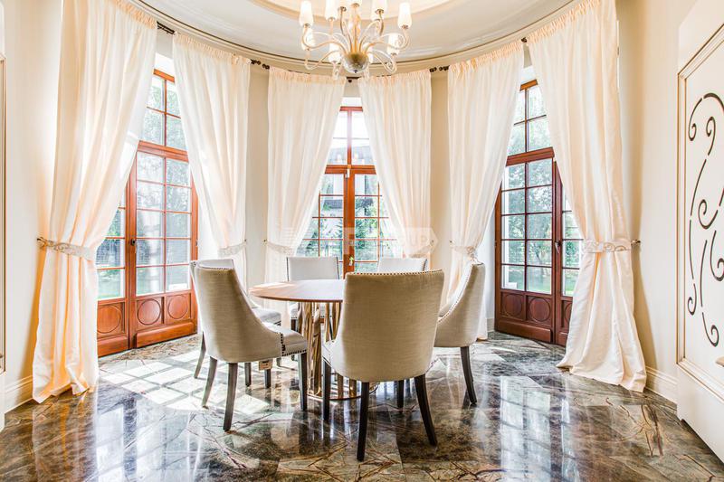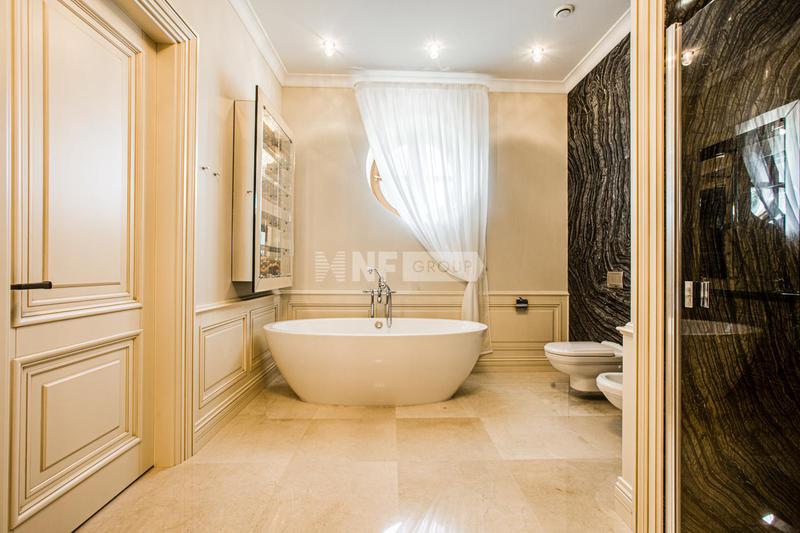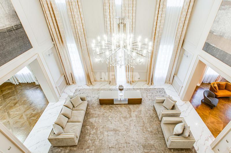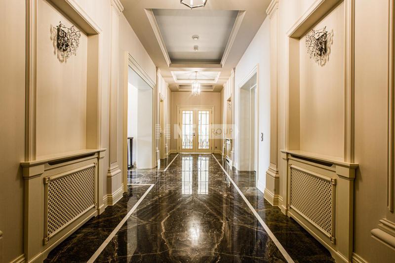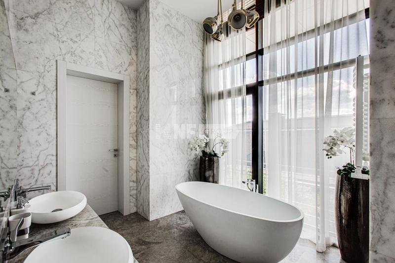 Внутренняя отделка выполнена высококачественными материалами, в том числе натуральными камнем и деревом. Мебель, текстиль и бытовая техника в доме представлены от ведущих мировых производителей. Единый стиль интерьера подчеркивают аутентичные предметы декора.