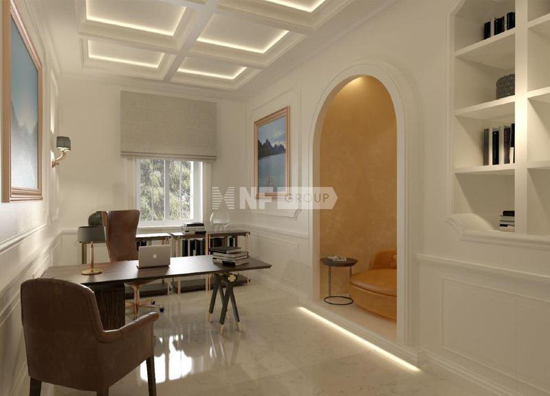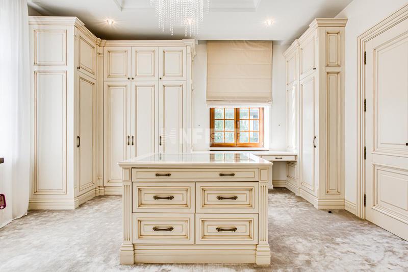 Третий этаж создан для отдыха: здесь находится женский кабинет с камином, просторная SPA-зона с сауной, хаммамом, джакузи, купелью, душевыми и зоной отдыха. В доме предусмотрены кинозал, винная комната, игровая, просторная кладовая, холодильник для шуб.